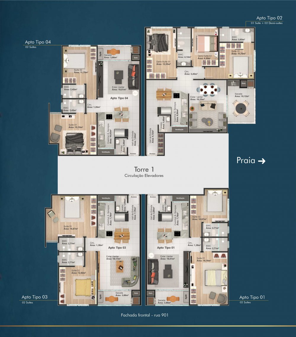 Empreendimento com localização exclusiva, a poucos metros do mar, e bem pertinho do Shopping Atlântico no centro de Balneário Camboriú/SC.