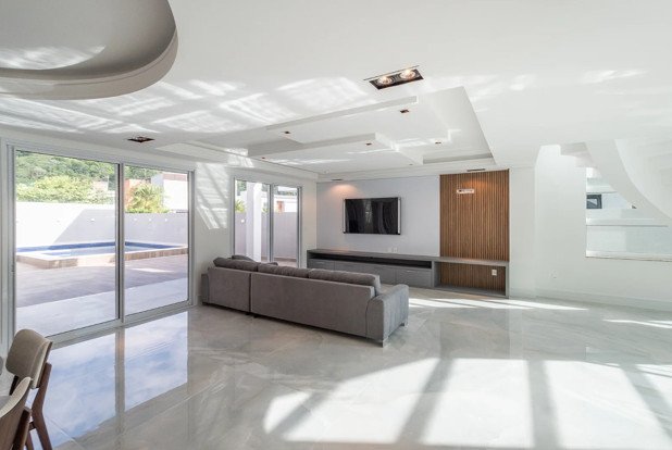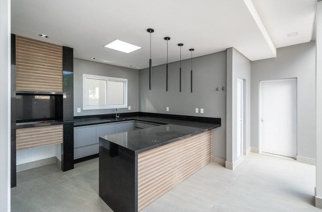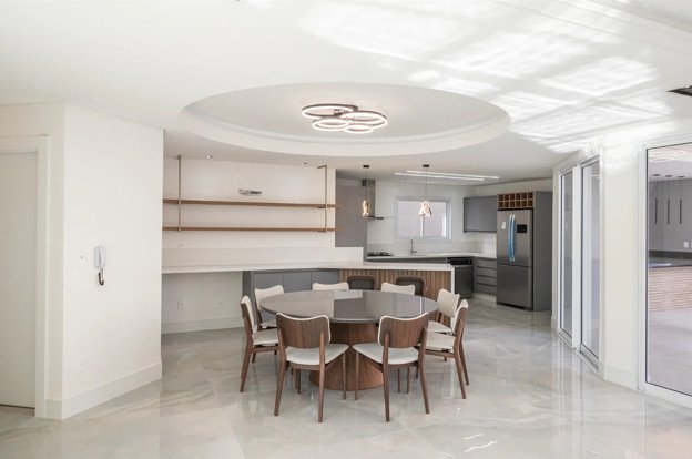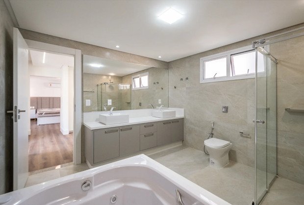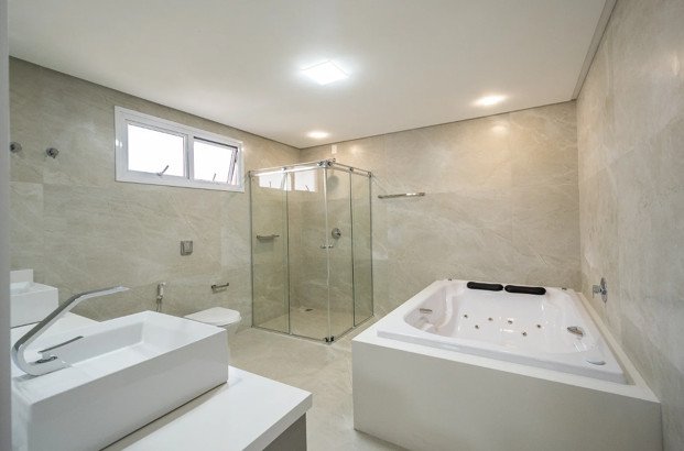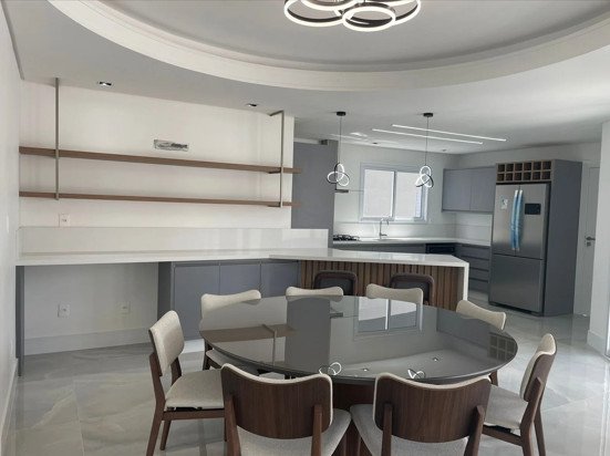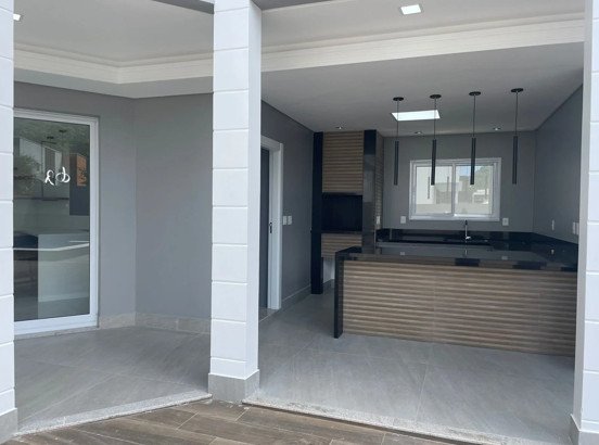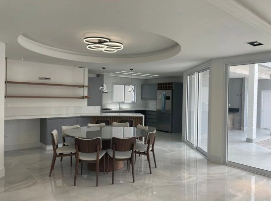 Esta magnífica residência oferece uma combinação perfeita de elegância, conforto e segurança. Com 5 quartos, sendo 5 suítes, e 6 banheiros, esta casa é um verdadeiro oásis de luxo e tranquilidade. A casa possui um acabamento impecável em gesso, proporcionando um ambiente sofisticado e moderno. Cada detalhe foi pensado para oferecer o máximo de conforto e funcionalidade. Espaços Amplos: com uma sala de estar e uma sala de jantar integradas, você terá um amplo espaço para receber amigos e familiares. O living espaçoso é perfeito para momentos de lazer e relaxamento. A cozinha americana e a cozinha tradicional são equipadas com móveis planejados e armários embutidos, oferecendo praticidade e estilo. A despensa adicional garante espaço extra para armazenamento. Todos os banheiros são equipados com hidromassagem e infraestrutura para água quente, proporcionando uma experiência de spa em casa. O banheiro de serviço e o lavabo adicionam conveniência. A fechadura com senha na porta de entrada e o interfone garantem a segurança da sua família. A infraestrutura para ar condicionado e gás individual assegura o máximo de conforto em todas as estações. A sacada com churrasqueira é o lugar ideal para desfrutar de um churrasco ao ar livre com uma vista incrível. O porcelanato de alta qualidade e os móveis planejados complementam o design sofisticado da casa.