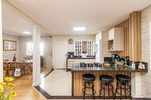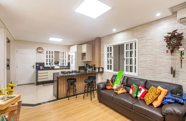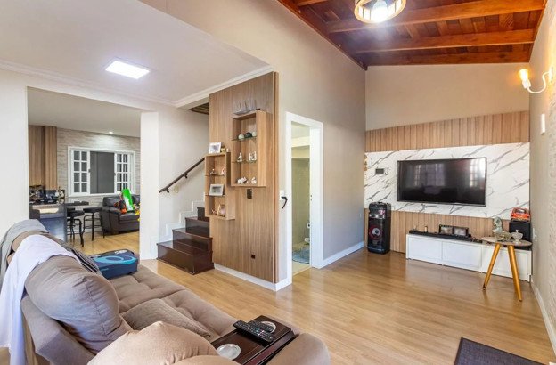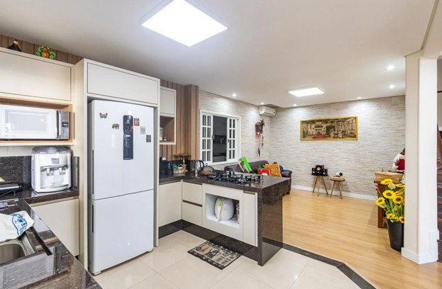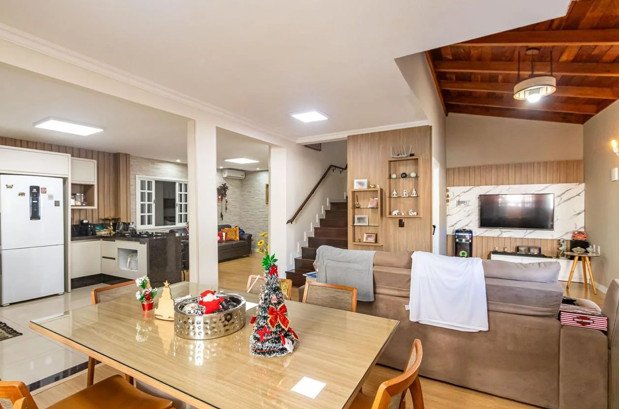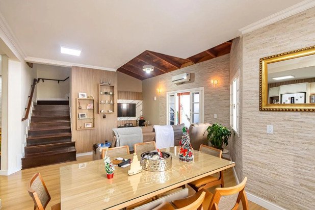 Com 270m² de área total, esta casa é perfeita para quem busca espaço e conforto. Ela possui 3 quartos, incluindo uma suíte com closet, garantindo privacidade e praticidade para sua família. Além disso, conta com um banheiro social e um lavabo, proporcionando comodidade para todos os moradores e visitas. O living integrado à cozinha com móveis planejados cria um ambiente harmonioso e funcional, ideal para o dia a dia. A sala de estar e a sala de jantar são espaços acolhedores e elegantes, perfeitos para momentos em família e recepções. A sacada, a varanda e churrasqueira são os espaços ideais para relaxar e aproveitar momentos ao ar livre. Com boa iluminação e ventilação, você terá o máximo de conforto e bem-estar. A casa possui medidores individuais de água, luz e gás, garantindo economia e praticidade. O interfone e as 4 vagas de garagem oferecem segurança e comodidade para sua família.