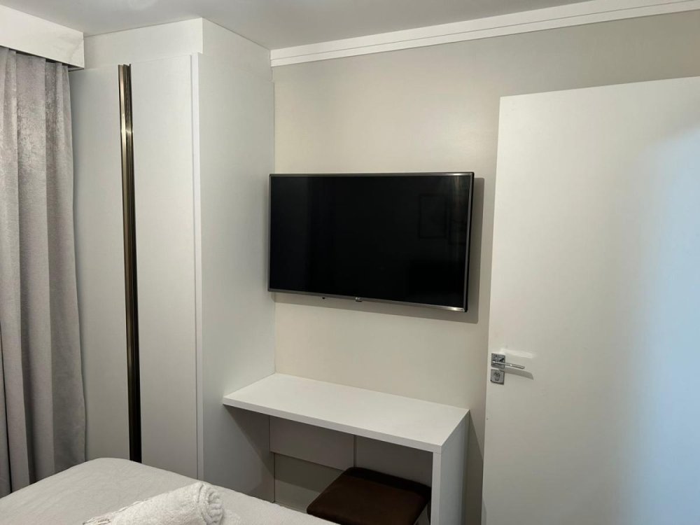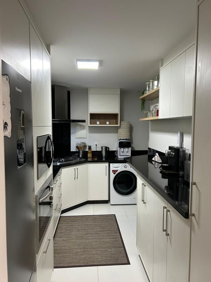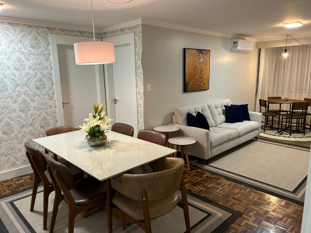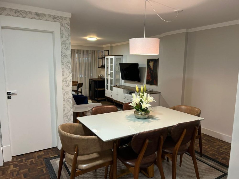 O apartamento possui uma planta bem distribuída, oferecendo uma suíte master, dois dormitórios adicionais, e uma ampla sala de estar integrada à sacada, que proporciona uma iluminação natural excelente. A cozinha é equipada com móveis planejados de alto padrão, ideal para quem valoriza praticidade e estilo. A presença de ar-condicionado em todos os ambientes assegura conforto durante todo o ano. A sacada, além de ser um espaço agradável para relaxamento, oferece uma vista privilegiada da Avenida Brasil, um dos principais eixos comerciais da cidade.