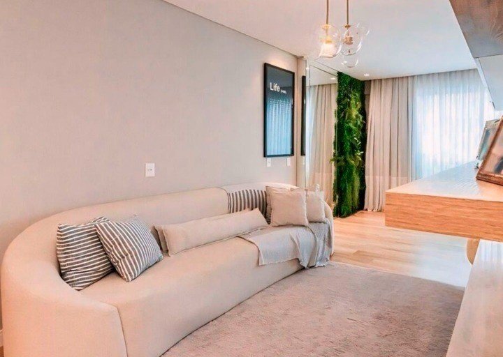 O apartamento conta com 2 dormitórios, ambos suítes, uma ampla sala de estar e jantar integrada, e uma sacada com churrasqueira a carvão, perfeita para momentos de lazer com a família e amigos. Com acabamentos de alta qualidade, como gesso e móveis planejados, o imóvel é entregue totalmente mobiliado, pronto para proporcionar uma experiência de moradia luxuosa.