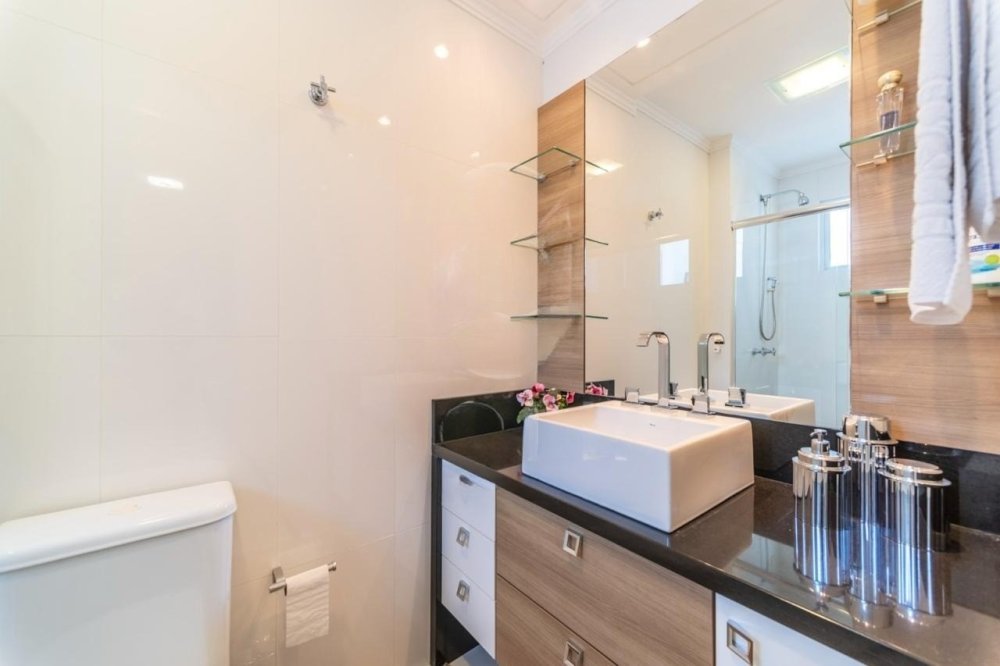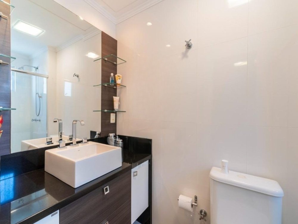 - Quatro banheiros luxuosos, com detalhes sofisticados como bancadas de mármore e metais premium.