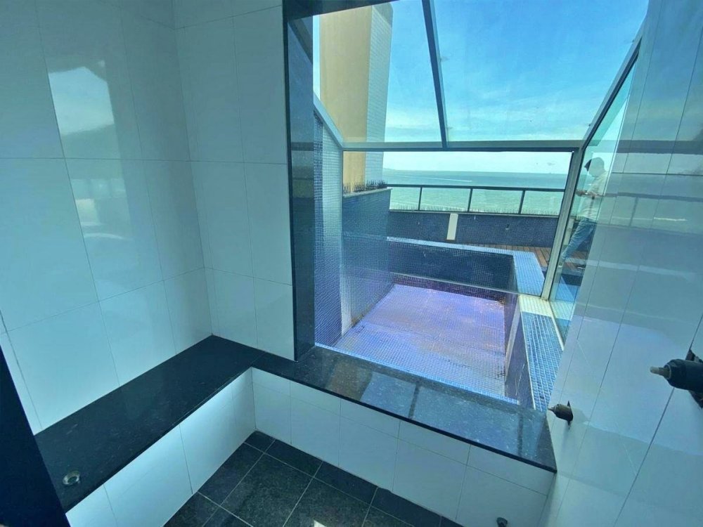 Com 05 suítes, incluindo uma suíte master equipada com hidromassagem e uma vista deslumbrante para o mar, a cobertura é um refúgio de tranquilidade e exclusividade. O living é integrado à cozinha, sala de estar e espaço gourmet com churrasqueira à carvão, criando um ambiente ideal para receber amigos e familiares.