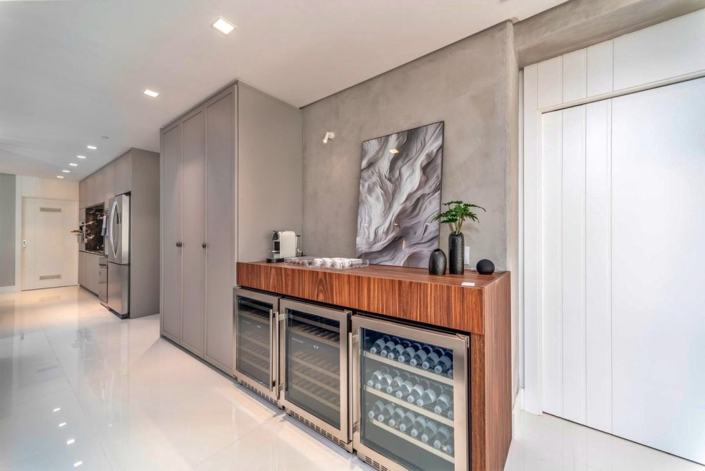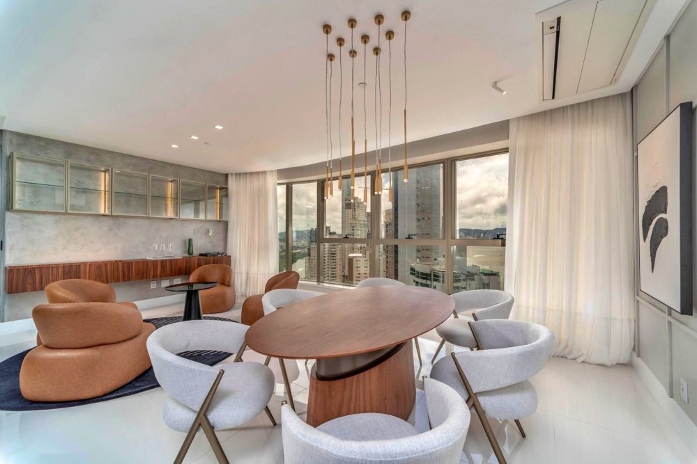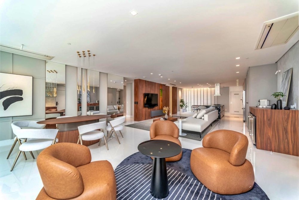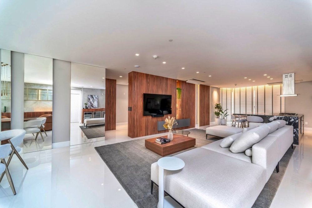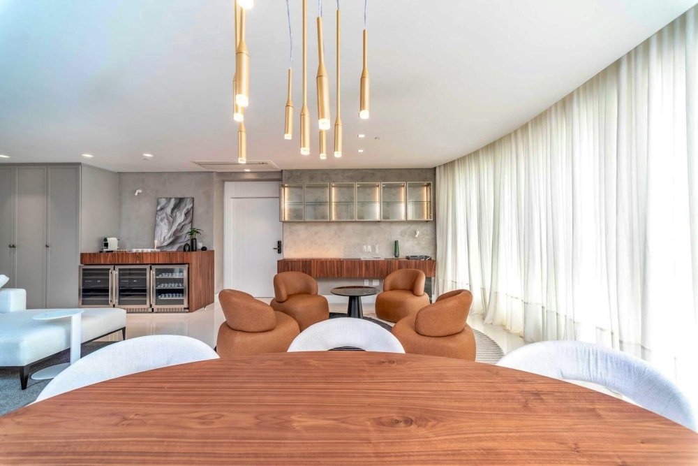 - Amplo living integrado, climatizado, com salas de estar e jantar.