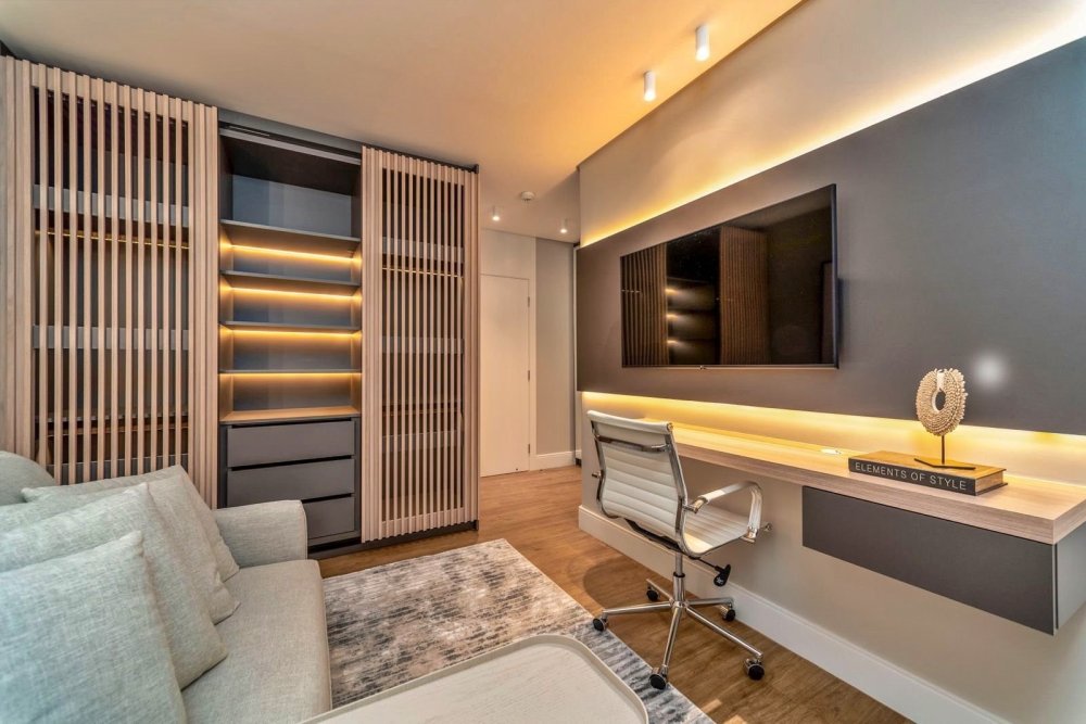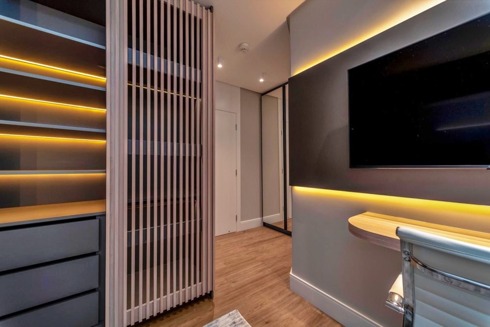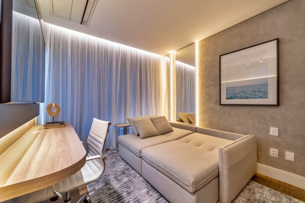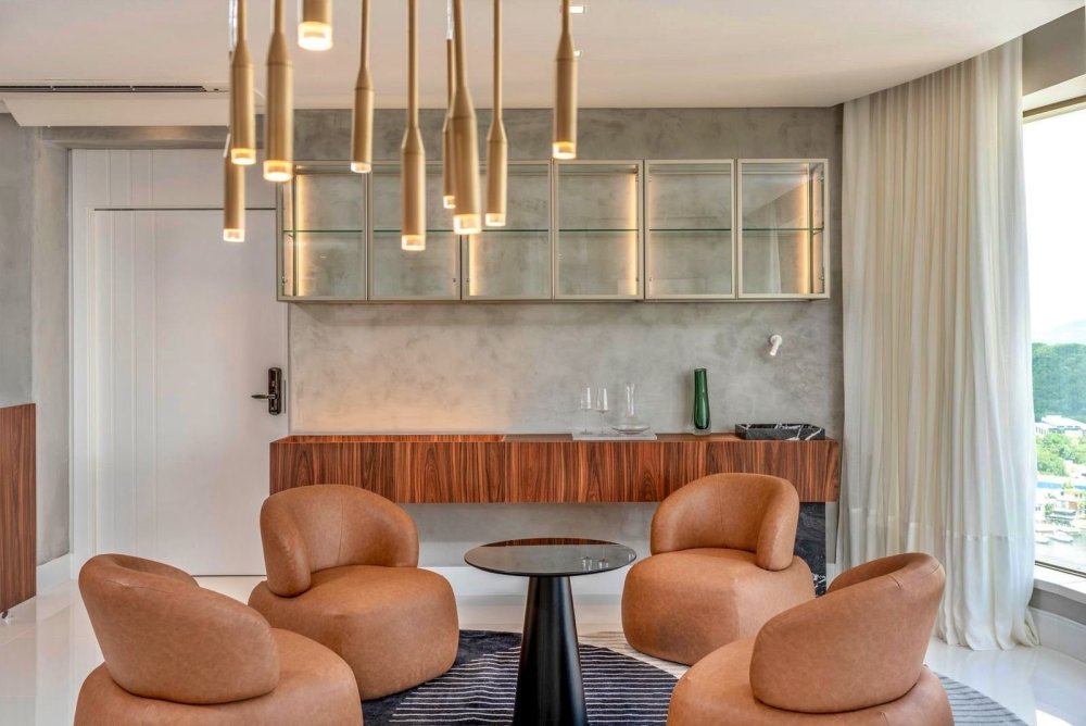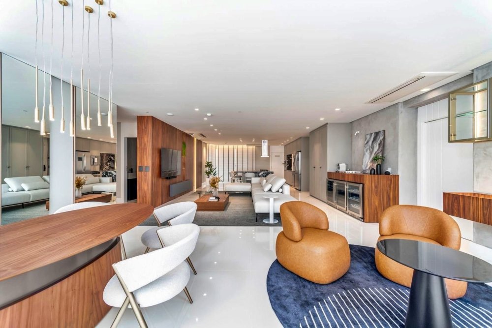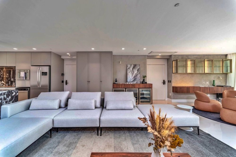 - Amplo living integrado, climatizado, com salas de estar e jantar.