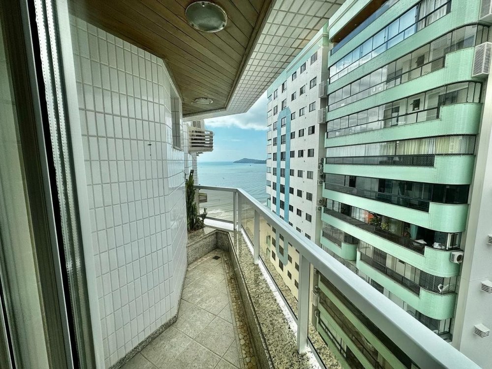 A sacada é um dos pontos altos do imóvel, com espaço para refeições ao ar livre ou momentos de descontração em um ambiente confortável e com vista privilegiada para o mar.