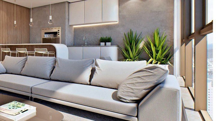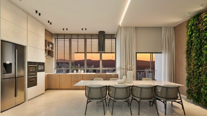 - Cozinha integrada, otimizando a funcionalidade e o convívio;