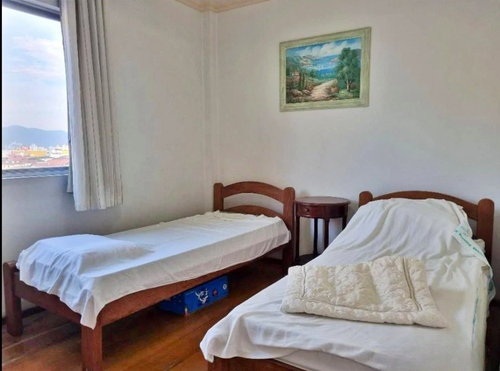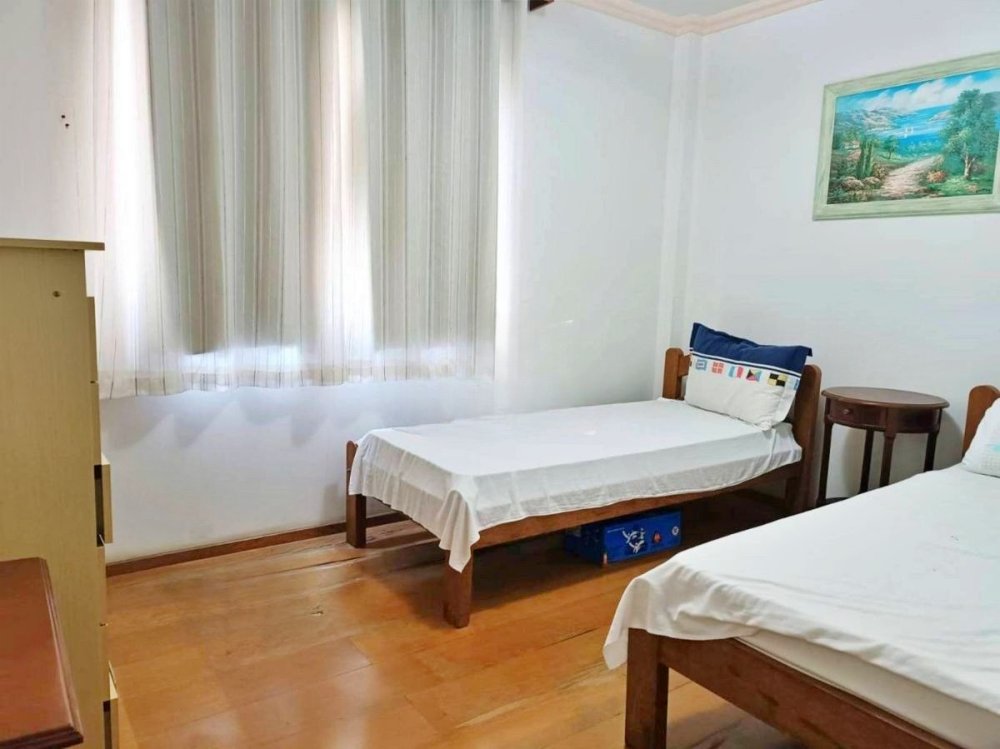 - O segundo dormitório é ideal para filhos, hóspedes ou até mesmo para um home office. Ele conta com duas camas de solteiro e cortinas claras, proporcionando um ambiente iluminado e agradável.