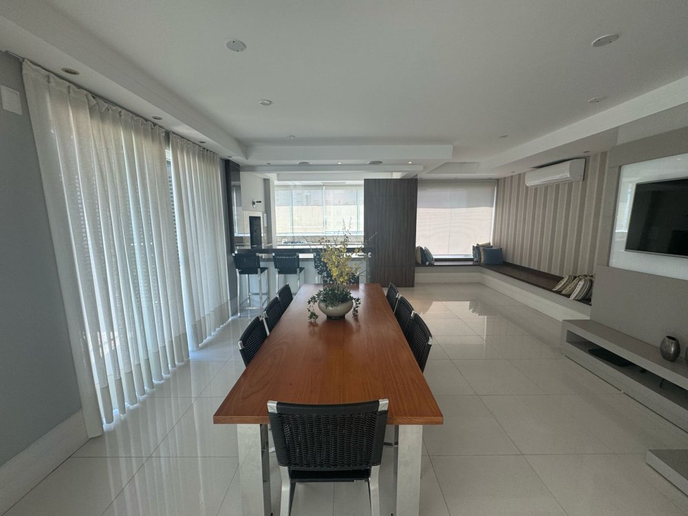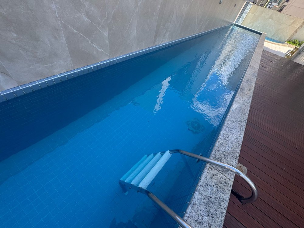 A área externa surpreende com uma piscina estreita e longa, ideal para natação ou relaxamento, cercada por deck em madeira e porcelanato de alta durabilidade. Um espaço exclusivo, perfeito para quem valoriza momentos de lazer com privacidade no coração da cidade.