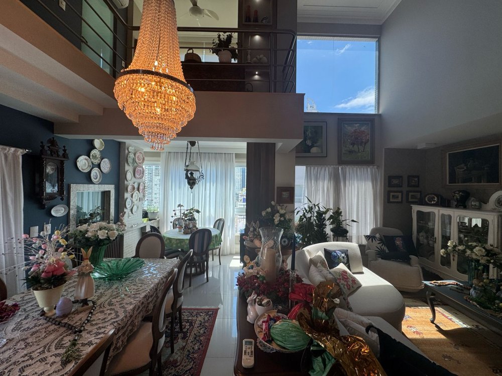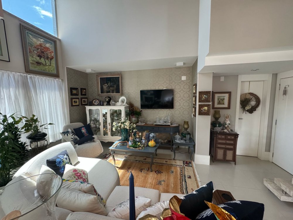 Com janelas amplas e pé-direito elevado, este ambiente impressiona à primeira vista. A luz natural invade o espaço, destacando a decoração clássica, os móveis elegantes e a sensação de amplitude. Ideal para receber amigos com elegância ou relaxar com conforto.