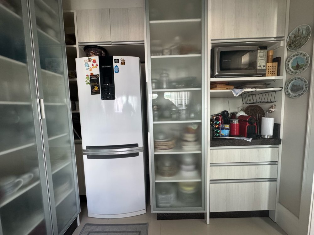 - Cozinha planejada com bancada em granito, exaustor em inox e nichos funcionais