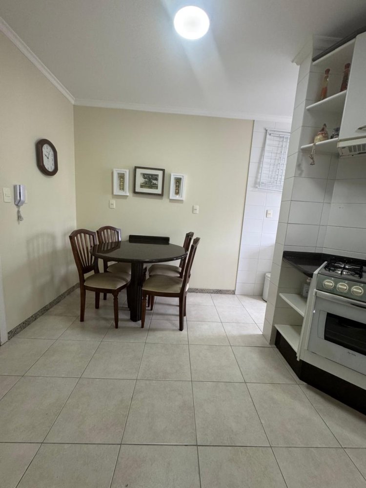 O espaço para refeições está harmoniosamente integrado à cozinha, com mesa para quatro lugares e decoração leve. Um ambiente que une funcionalidade e acolhimento, ideal para encontros em família ou refeições rápidas do cotidiano.