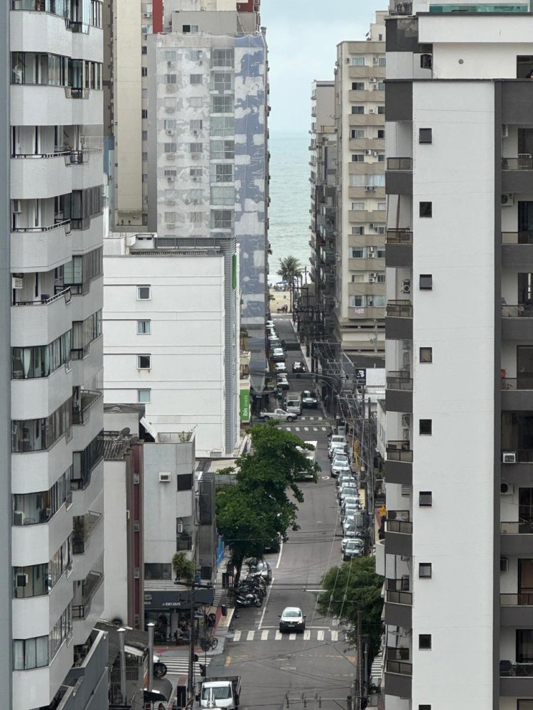 Vista urbana com recorte direto para o mar ao fundo, trazendo a atmosfera da praia para dentro do apartamento. A localização privilegiada permite acesso fácil à orla e aos comércios locais. Um cenário inspirador que valoriza ainda mais a experiência de morar perto do mar.