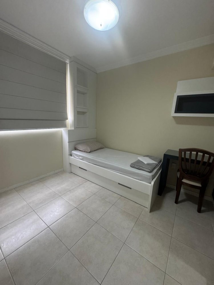 Quarto adicional mobiliado com cama de casal e cama auxiliar, perfeito para acomodar visitas ou ampliar a capacidade da família. A iluminação natural e o ar-condicionado proporcionam um ambiente sempre confortável. Uma ótima opção para quem busca flexibilidade e praticidade.