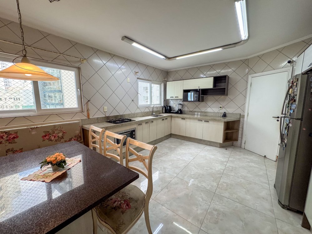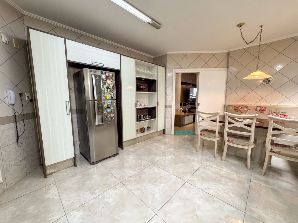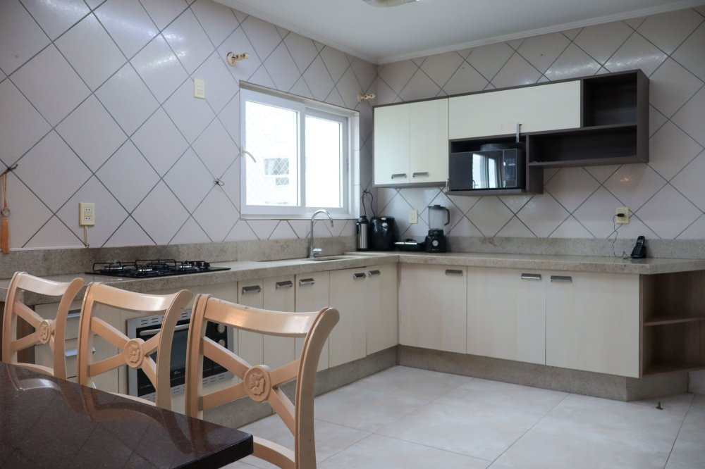 A cozinha principal, ampla e funcional, conta com armários planejados, copa com mesa estofada e boa ventilação. Um ambiente pensado para o uso diário, que une praticidade e acolhimento.