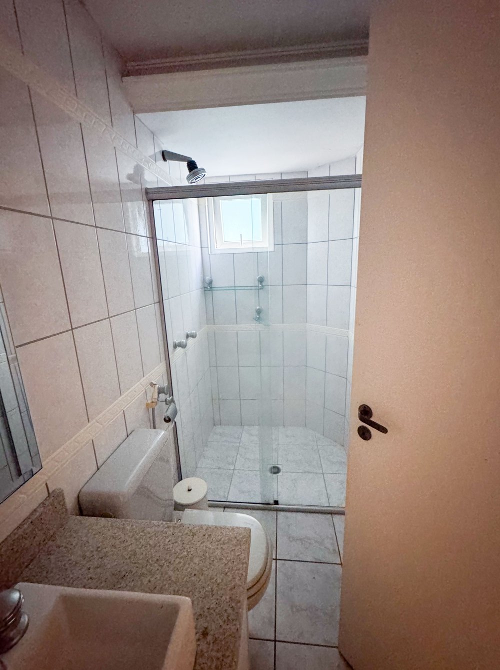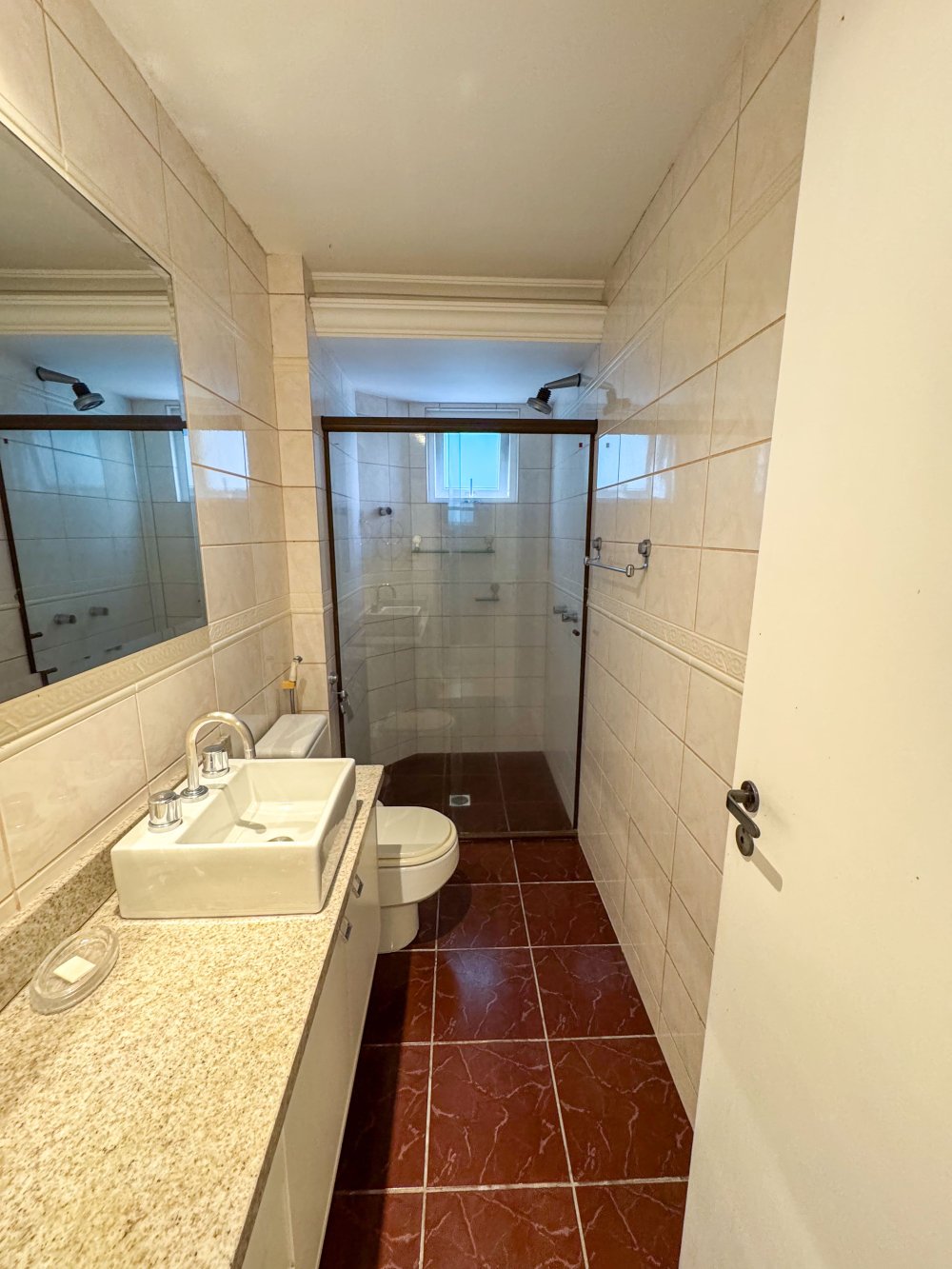 Os banheiros sociais têm design limpo, bancadas em granito e box em vidro. Prontos para uso imediato, podem ser facilmente adaptados ao estilo pessoal do novo morador.