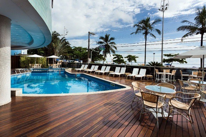 Espreguiçadeiras, mesas com ombrelones e um deck amplo compõem a área externa do Edifício Saint Antoine. Ideal para dias de sol e descanso, o espaço alia conforto, funcionalidade e uma vista espetacular da praia. Um verdadeiro refúgio para quem valoriza qualidade de vida junto ao mar.