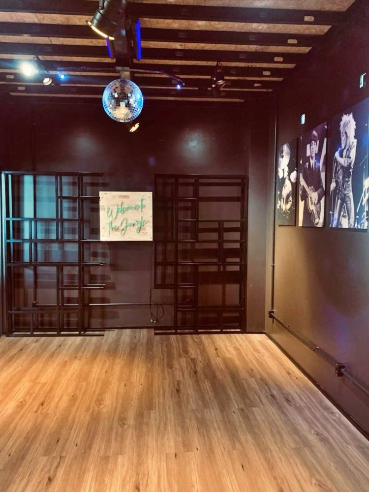 Com piso vinílico amadeirado, vigas aparentes e uma charmosa bola de espelhos no teto, este ambiente foi pensado para os criativos. Ideal como estúdio musical, sala de gravação ou ateliê, é um espaço que convida à expressão artística e autenticidade.