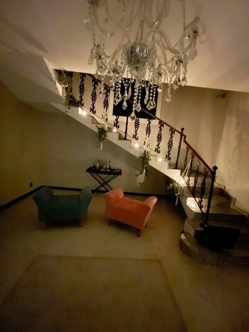 Ao entrar, um hall de pé-direito duplo dá as boas-vindas com elegância. O lustre de cristal reluz em meio à iluminação suave e destaca a escada com corrimão de ferro artístico. Um ambiente que combina tradição e estilo contemporâneo com maestria, dando o tom para o que vem a seguir.