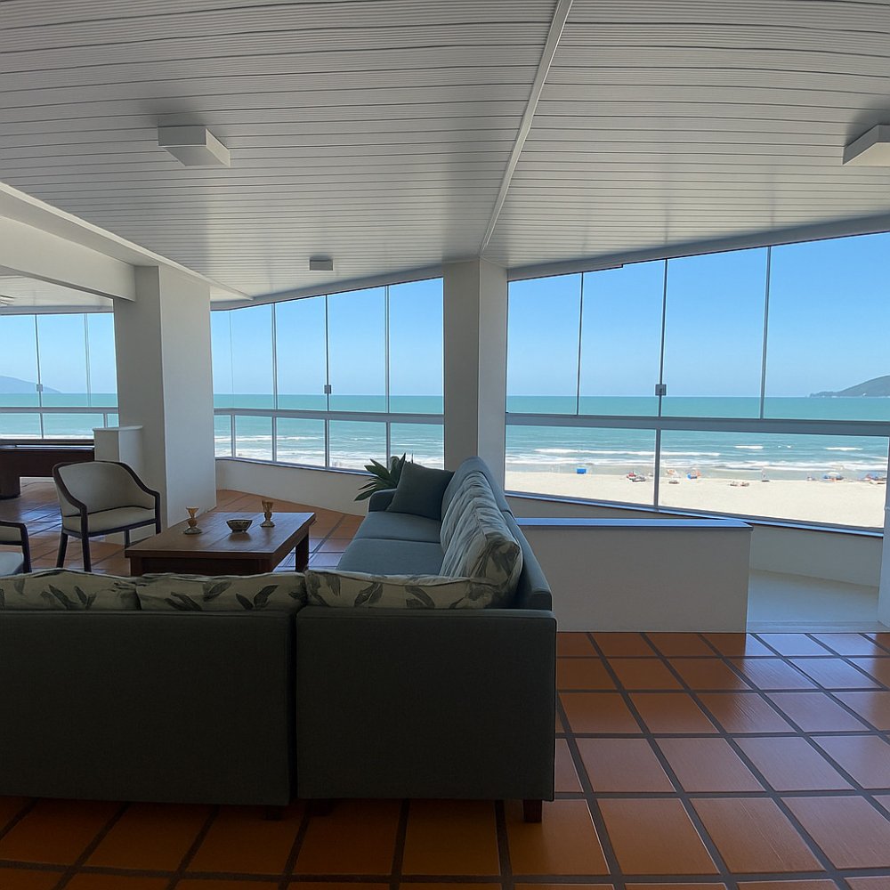 Sim. A varanda gourmet possui vista panorâmica do oceano, é envidraçada e protegida contra o vento, garantindo conforto o ano inteiro. É perfeita para relaxar, ler, tomar café da manhã ou apreciar o pôr do sol.