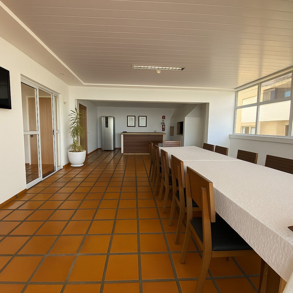 Um dos grandes diferenciais do edifício é seu salão de festas com espaço gourmet, projetado para receber com elegância e conforto. O ambiente, amplo e bem iluminado, é ideal para confraternizações familiares e encontros com amigos.