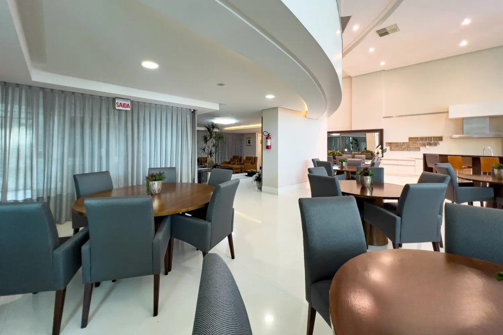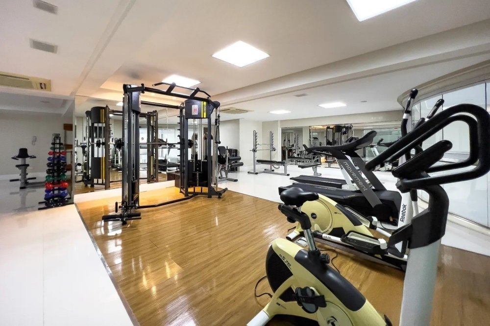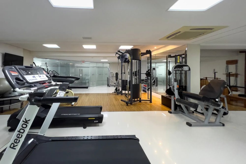 A rotina de treinos não precisa ser sacrificada. A academia do edifício conta com aparelhos profissionais para musculação e cardio, espelhos de parede a parede, iluminação branca natural e piso misto em porcelanato e madeira, criando um ambiente funcional, seguro e esteticamente agradável. Perfeita para treinos matinais ou momentos de autocuidado ao longo do dia.