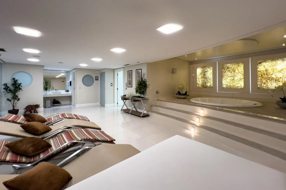 O SPA do Le Classic é um espaço projetado para relaxamento profundo. A jacuzzi elevada, a iluminação cênica, os detalhes em pedra e madeira, e o clima envolvente criam uma atmosfera perfeita para aliviar o estresse do dia. Completo com espreguiçadeiras e temperatura ideal, é um ambiente ideal para recarregar as energias sem precisar sair do prédio.