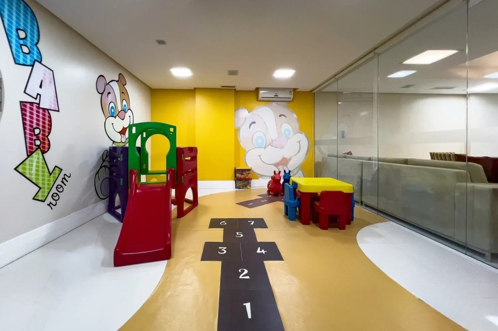 Um espaço totalmente dedicado às crianças, com brinquedos pedagógicos, escorregador, mesas de atividades e piso emborrachado. A brinquedoteca oferece segurança e diversão em um ambiente lúdico e estimulante, proporcionando tranquilidade para os pais e liberdade para os filhos.