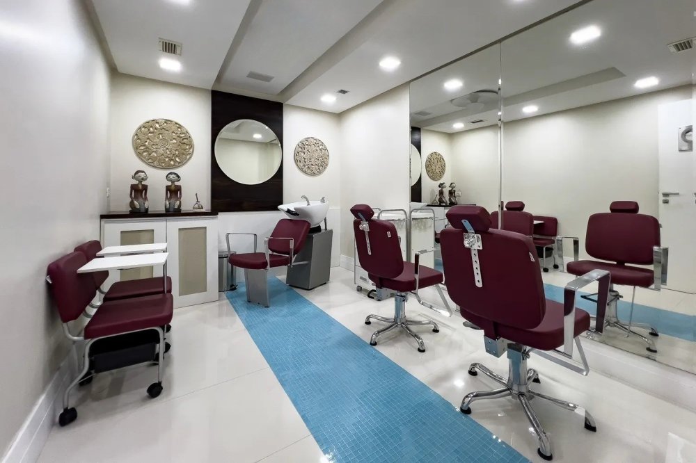 Um ambiente reservado, pensado para atender procedimentos estéticos com discrição e conforto. A sala de beleza possui cadeira profissional, lavatório, espelhos em parede inteira e infraestrutura para serviços como cabelo, maquiagem, manicure e cuidados com a pele - tudo sem sair de casa.