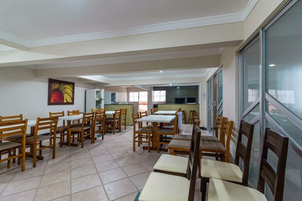 O salão de festas é um dos pontos altos do condomínio. Conta com ambiente climatizado, churrasqueira embutida, bancada em granito e mesas dispostas de maneira a favorecer o convívio. Seja para comemorar aniversários ou apenas reunir amigos em um fim de semana, o espaço é funcional e convidativo.