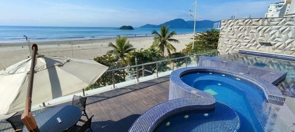 O destaque do rooftop é a deslumbrante piscina com borda infinita. Ela se mistura visualmente ao mar, criando a sensação de flutuar sobre as águas. Ao lado, uma jacuzzi complementa a experiência com conforto e sofisticação. Perfeita para relaxar com uma taça de vinho ou curtir o verão com a família.