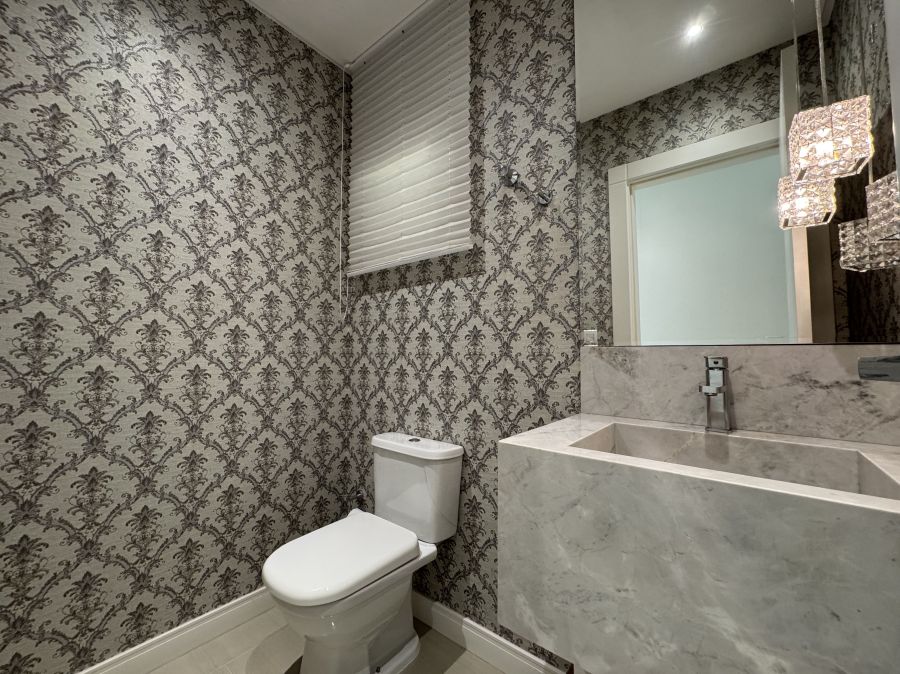 Os acabamentos sofisticados, aliados à planta inteligente, criam um equilíbrio perfeito entre estética e funcionalidade. Os 4 banheiros, bem distribuídos, garantem praticidade para toda a família e para receber visitas sem abrir mão da organização.