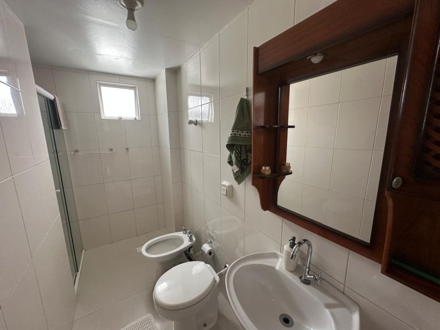 Os três banheiros do apartamento seguem um estilo clássico, com revestimentos em cerâmica branca, box em vidro temperado e espelhos amplos. Funcionais e bem distribuídos.
