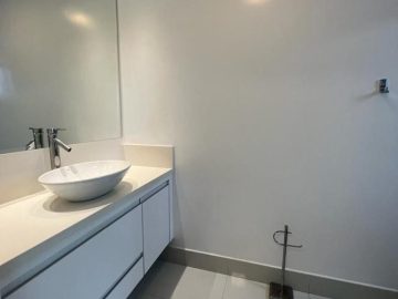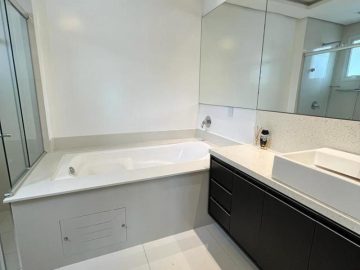 Com design clean e contemporâneo, apresentam bancadas em quartzo, gabinetes sob medida, iluminação embutida e banheira de hidromassagem, perfeita para momentos de relaxamento.