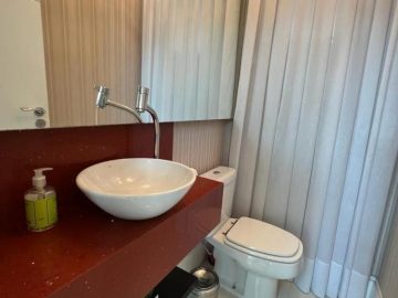 Os banheiros seguem o mesmo padrão de sofisticação do imóvel.