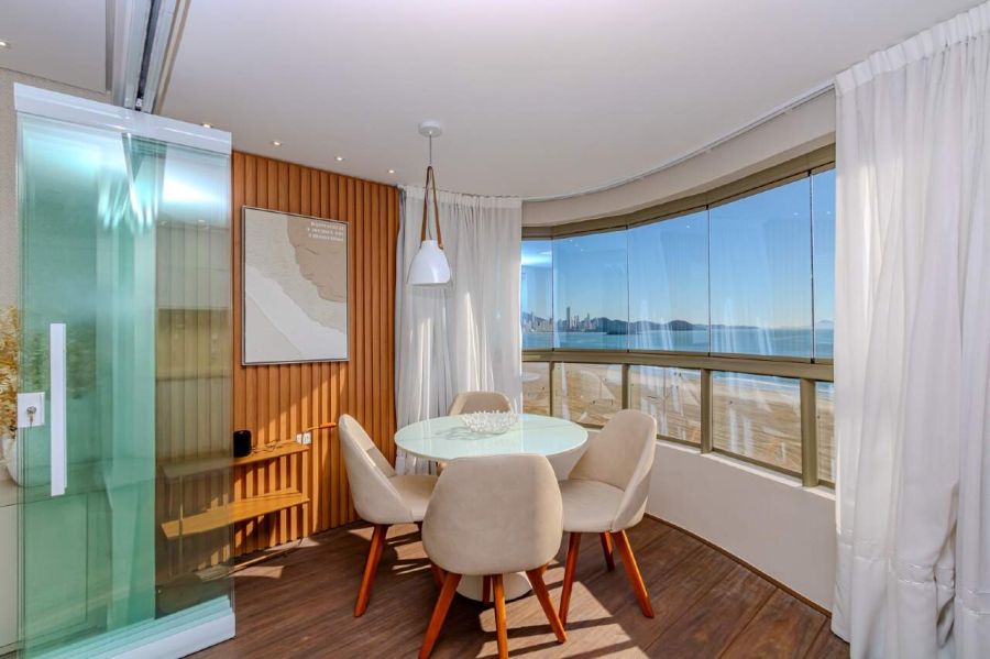 Viver em um apartamento frente mar à venda no Edifício Vale Dourado, na Barra Sul em Balneário Camboriú, é ter o mar como cenário fixo da rotina diária. Localizado na Avenida Atlântica, nº 4330, em frente à Praia Central, este imóvel frente mar reúne vista definitiva, planta funcional e ambientes integrados em 110 m² privativos e 133,47 m² totais. A distribuição inteligente entre área social, dormitórios e serviços faz deste apartamento uma opção rara para quem busca alto padrão em um dos trechos mais valorizados de Balneário Camboriú.