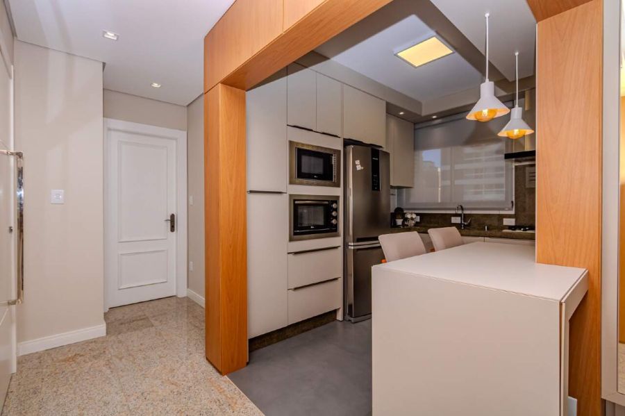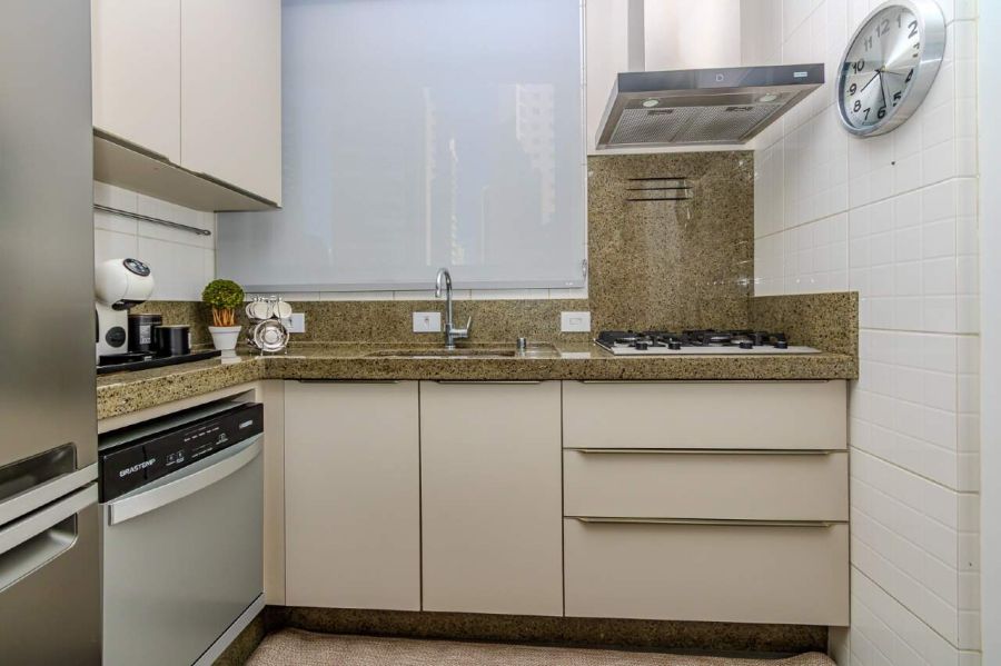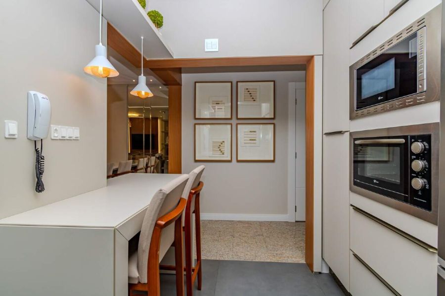O imóvel é semi mobiliado, permanecendo com marcenaria sob medida em todos os ambientes, móveis fixos planejados e diversos itens decorativos integrados ao projeto.