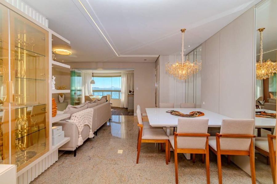 Ao abrir a porta deste apartamento no Edifício Vale Dourado em Balneário Camboriú, a primeira sensação é de amplitude e horizonte. A vista mar definitiva se torna parte da rotina, com o oceano sempre presente pelas esquadrias da área social e dos dormitórios.
