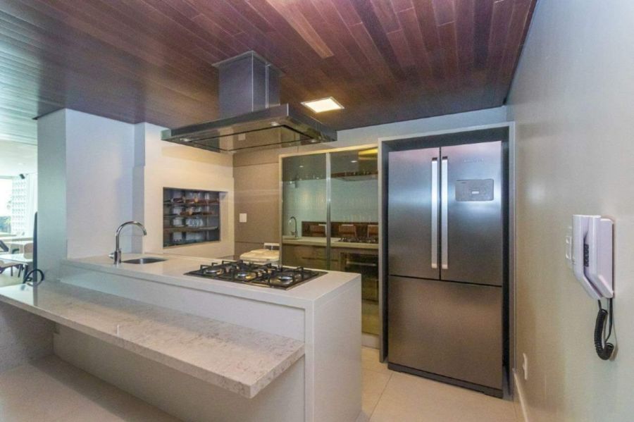 - Churrasqueira a gás no espaço gourmet