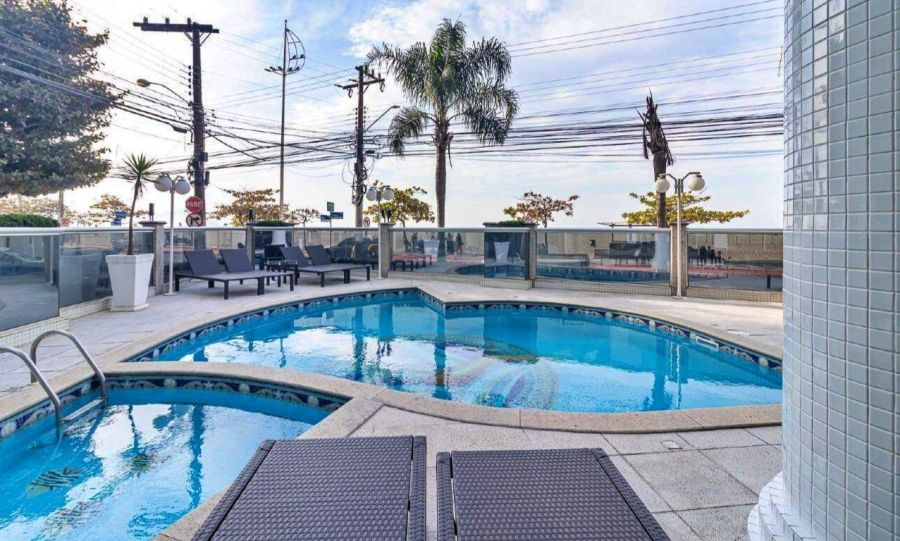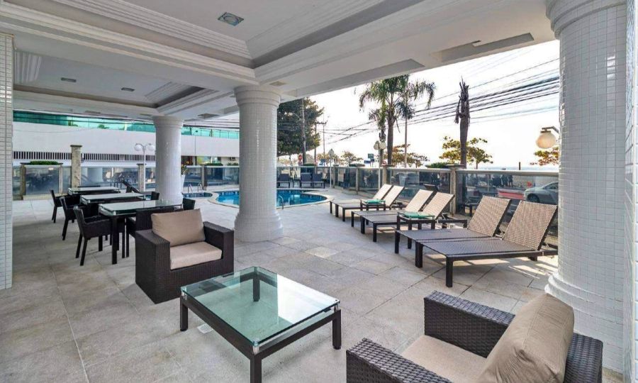 O silêncio interno chama atenção. Mesmo em uma avenida icônica como a Atlântica, o condomínio preserva sensação de recolhimento e privacidade.