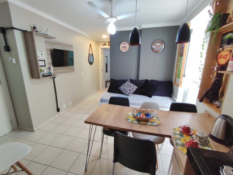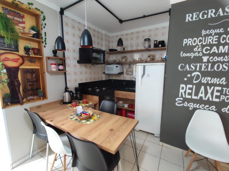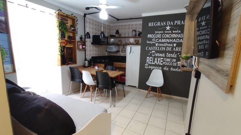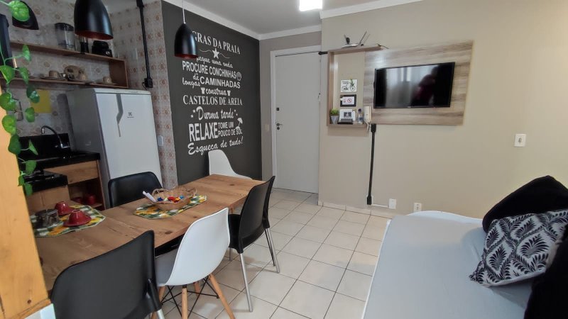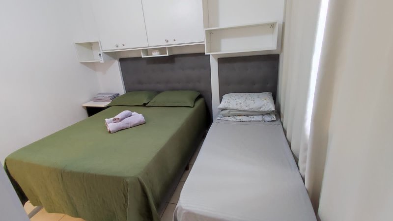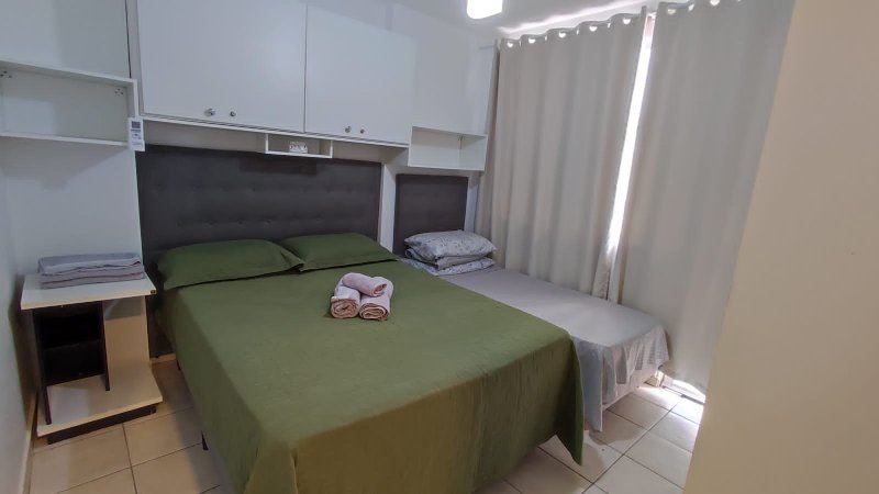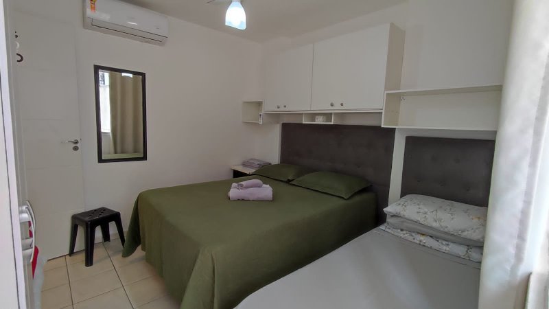 O apartamento oferece um dormitório climatizado com duas camas, sendo uma de casal e outra de solteiro. Além disso, possui cozinha americana, sala e é totalmente mobiliado, equipado e decorado. A configuração versátil e o fato de ser locado por aplicativo destacam-no como uma oportunidade única.