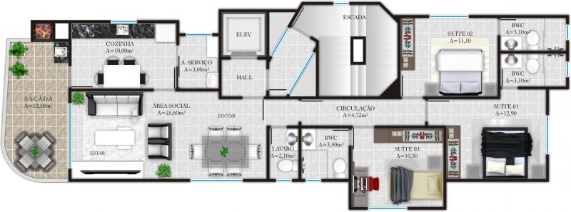 - Área Privativa: 115 m²