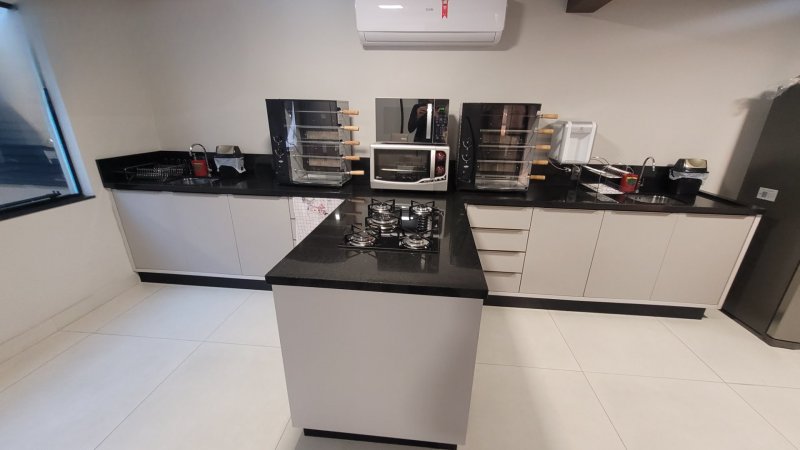 Salão de Festas completo, com churrasqueira a Gás e elétrica além de louças, utensílios e uma linda decoração.