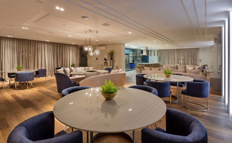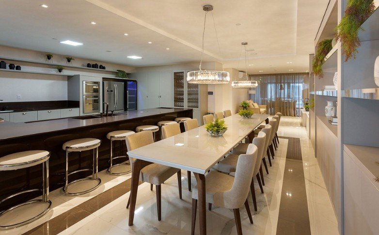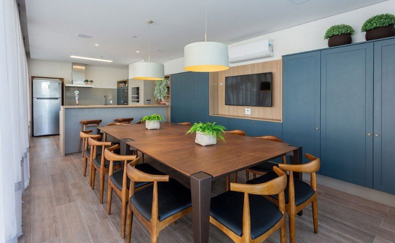 Os apartamentos apresentam um amplo living integrado de sala de estar e sala de jantar, churrasqueira, 03 vagas de garagem e infraestrutura para automação residencial, oferecendo uma experiência única aos moradores.