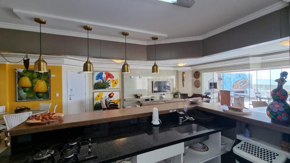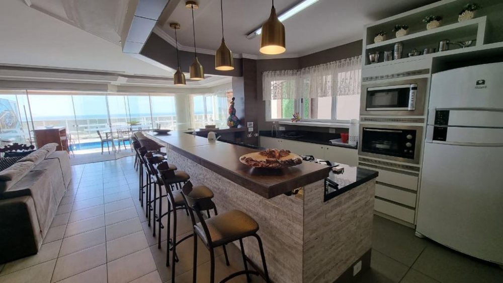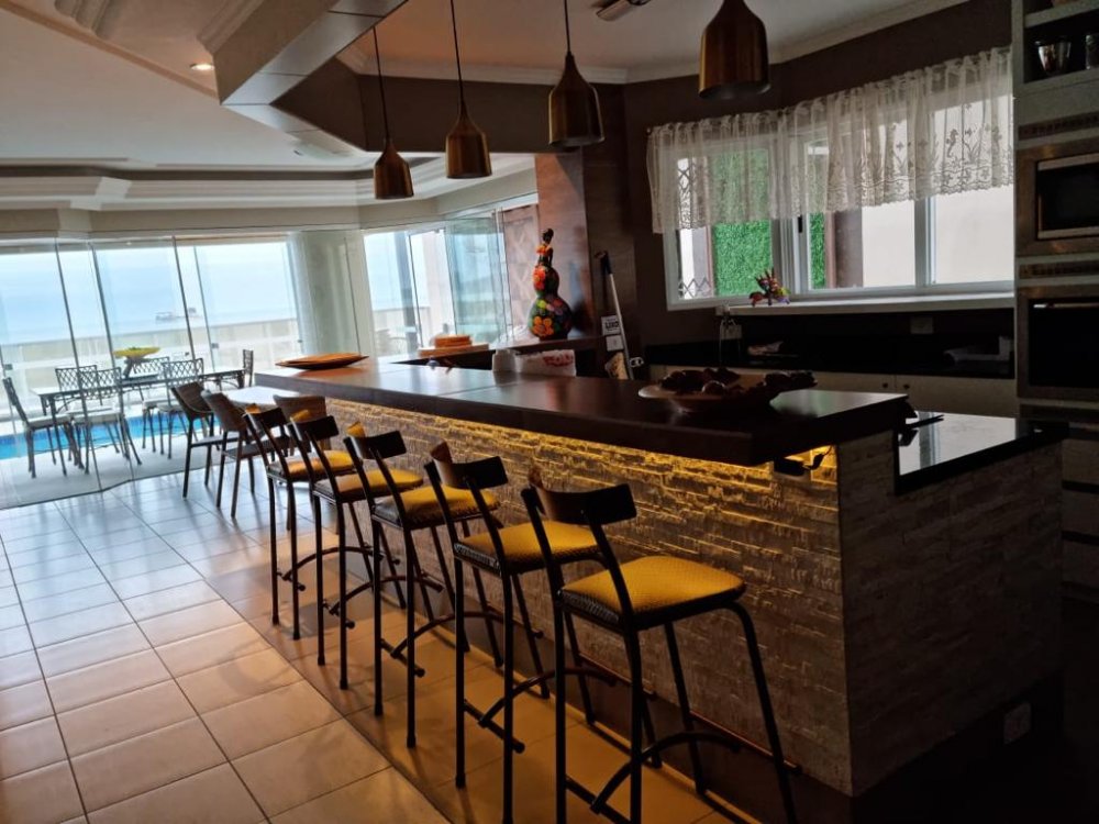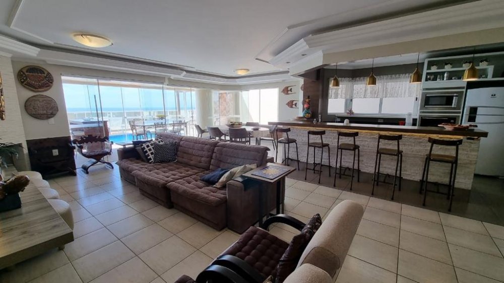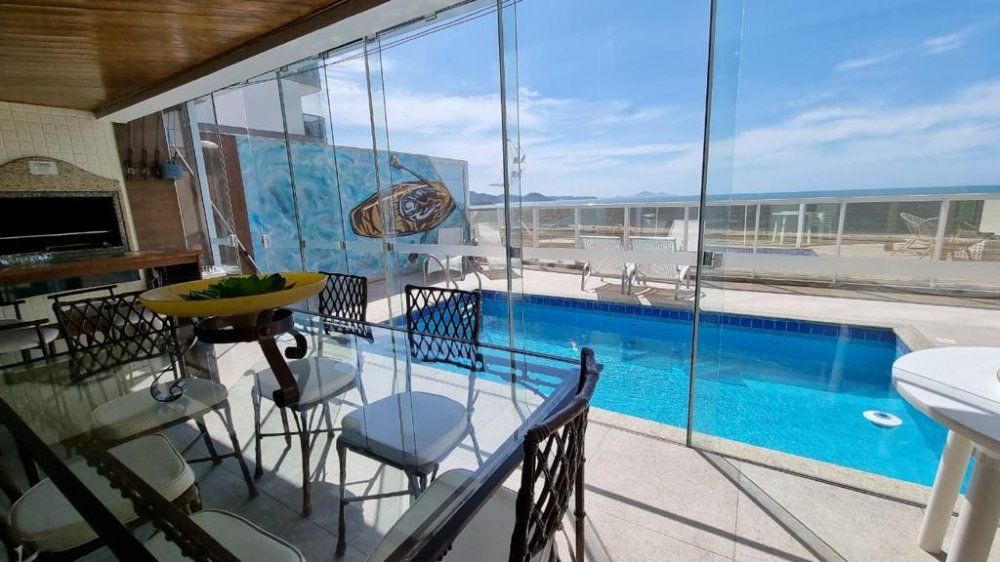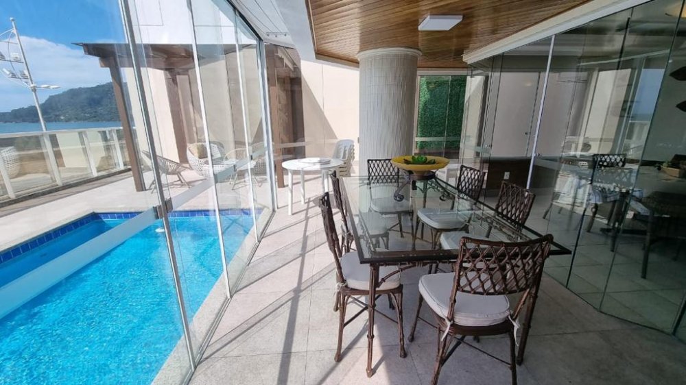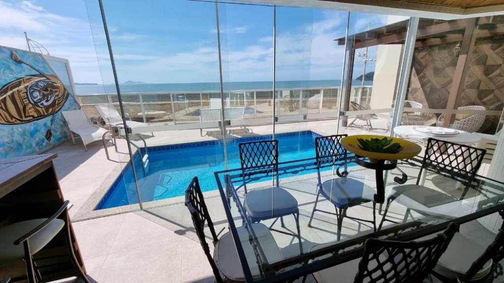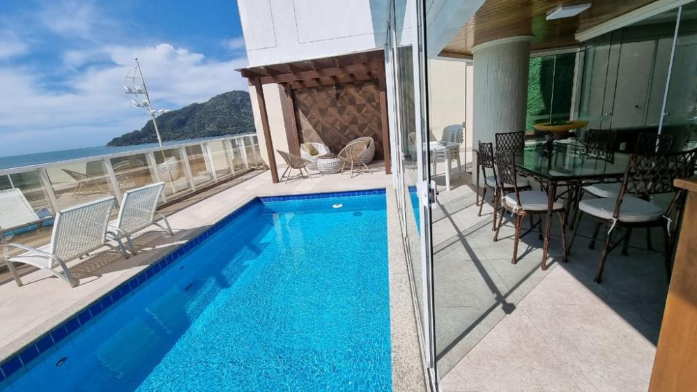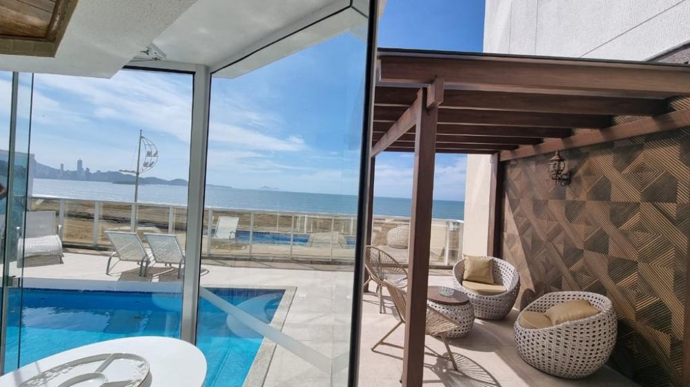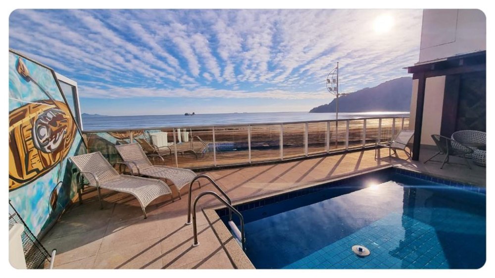 Mas as verdadeiras joias deste apartamento são as áreas externas. A área gourmet com churrasqueira a carvão é ideal para reuniões animadas com amigos e familiares, enquanto a sacada com piscina privativa oferece um espaço exclusivo para relaxar e contemplar a vista espetacular da praia. O pergolado é o local perfeito para desfrutar de um jantar sob as estrelas, enquanto o terraço espaçoso oferece ainda mais espaço para entretenimento.