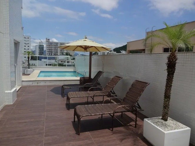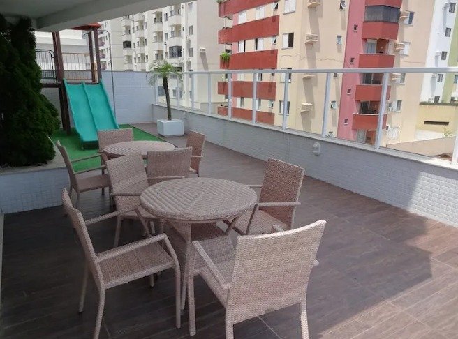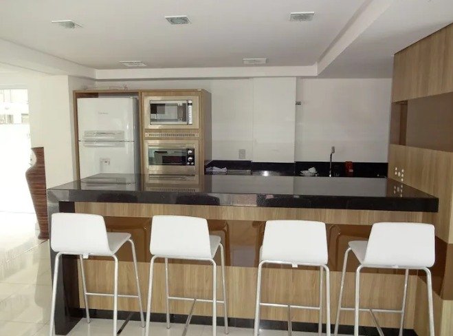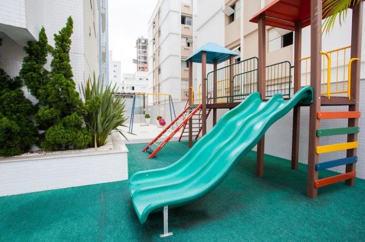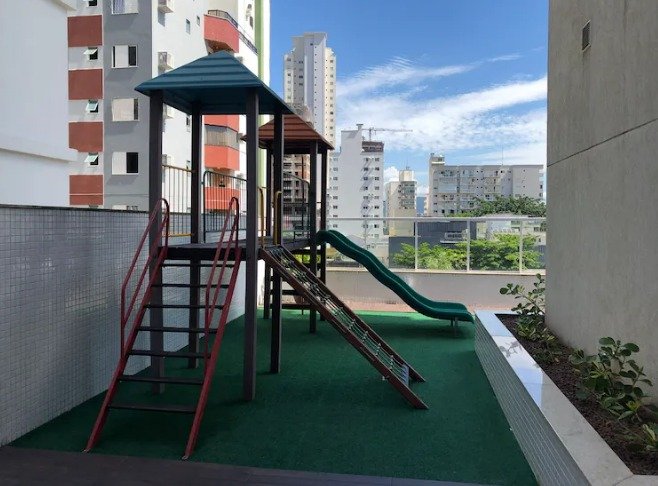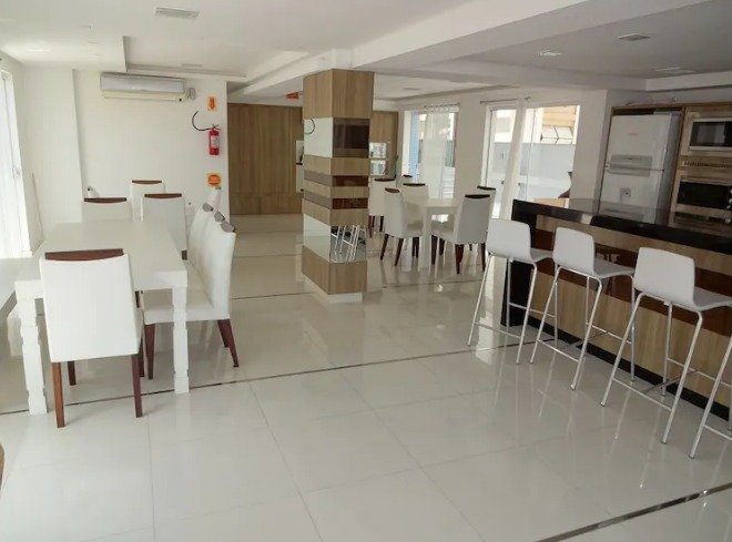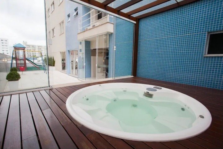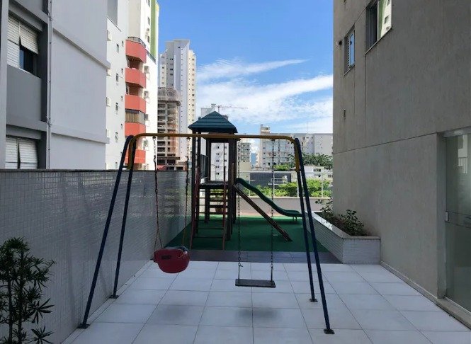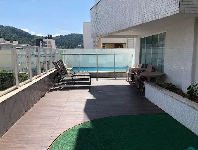 O condomínio ainda possui uma área de lazer completa, com playground, salão de festas, hall de entrada decorado e mobiliado, elevador, piscina, espaço fitness e uma piscina com deck de madeira incrível.