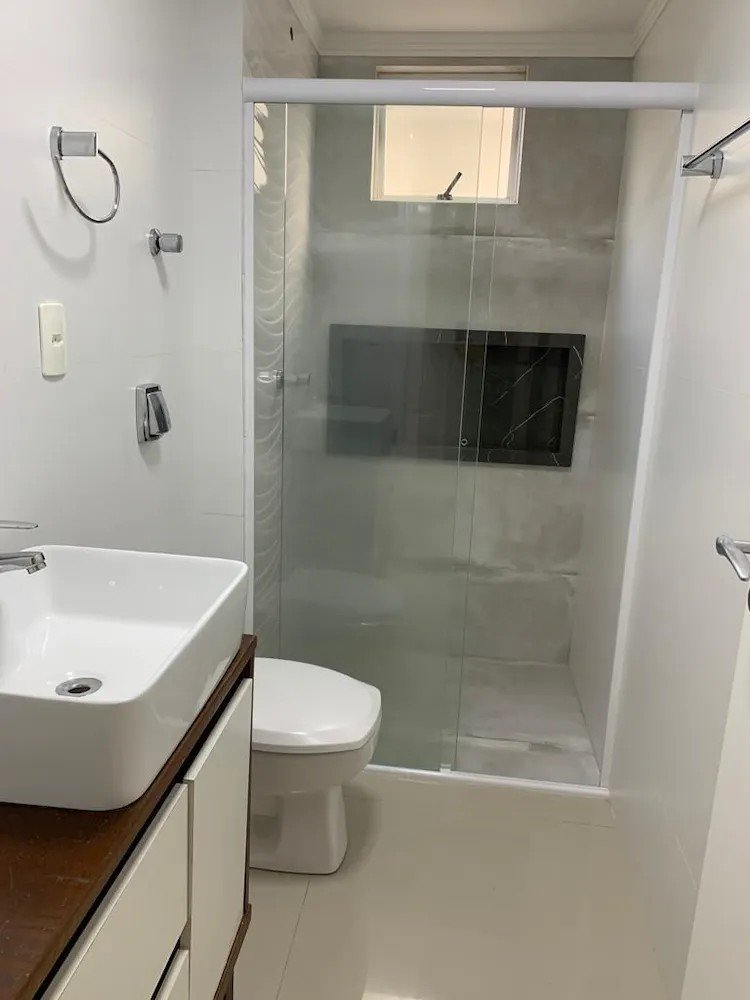 Uma das características marcantes deste apartamento é a sacada aberta, equipada com uma churrasqueira a carvão. Aqui, você poderá desfrutar de momentos agradáveis ao ar livre, apreciando a vista livre e respirando o ar puro da região.