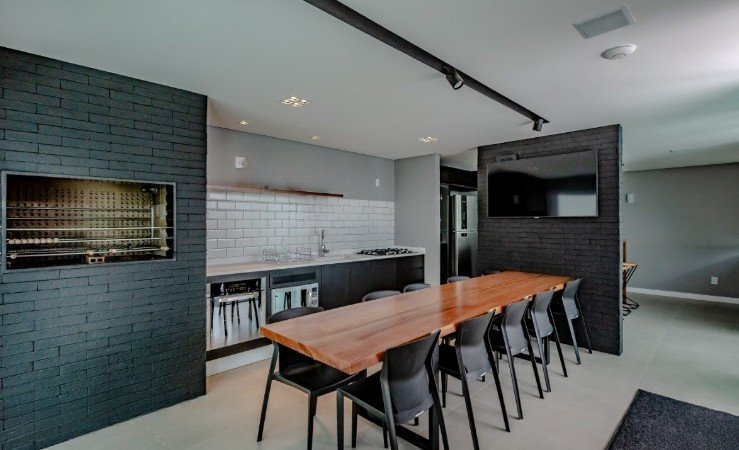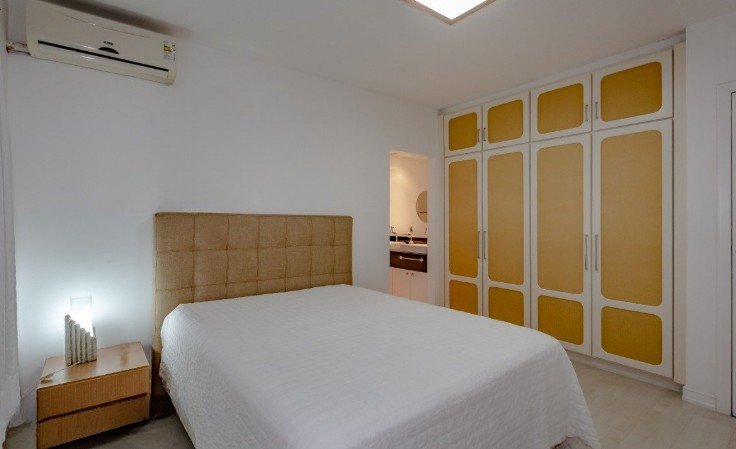 Mais detalhes acerca do apartamento incluem sistema de aquecimento de água, sistema de ar-condicionado, área de serviço, armários embutidos, área destinada a churrasco e copa.