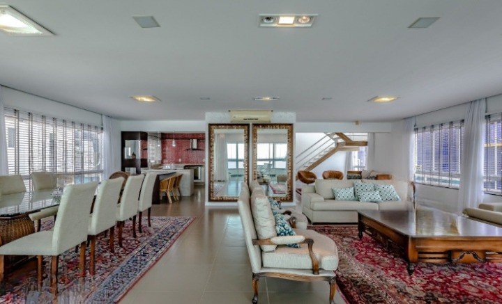 Essa cobertura é uma das maiores da cidade tendo 730m² totais e apresenta um terraço espaçoso, ideal para momentos de entretenimento tanto dentro quanto fora do imóvel.