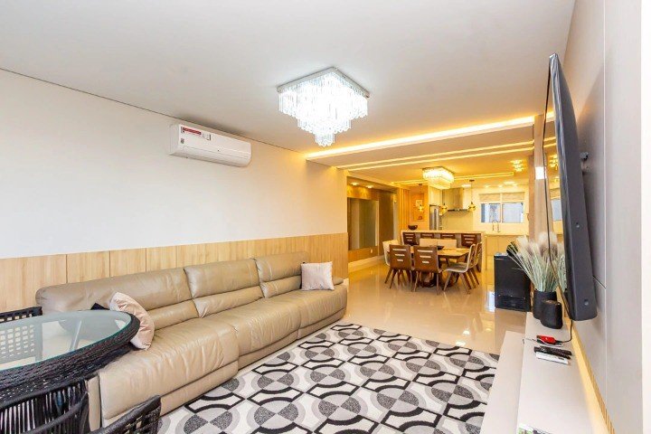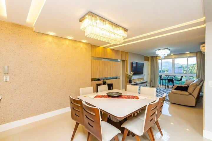 Ao adentrar neste apartamento dos sonhos, somos recebidos por um living integrado, onde cada ambiente flui harmoniosamente em uma dança perfeita de elegância e conforto. A presença de um lavabo adiciona uma nota de refinamento adicional, enquanto a churrasqueira a carvão permite desfrutar de momentos inesquecíveis de convívio com familiares e amigos.